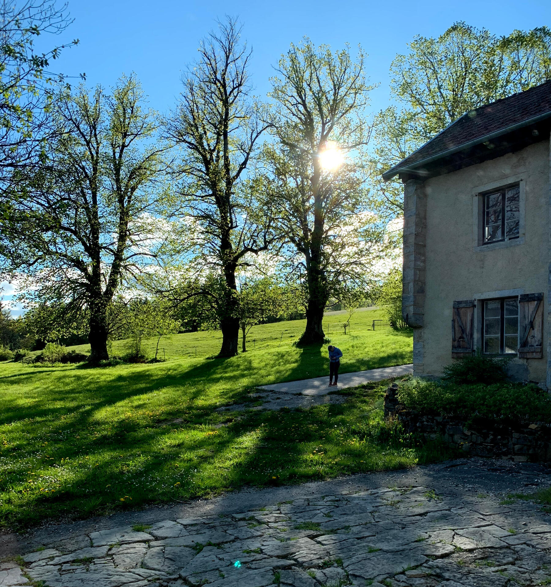 Le lieu qui vous recevra est un cocon de quelques centaines de mètres carrés au milieu d'un paradis de verdure, de vaches, de comté et de Macvin. Les pièces sont grandes et les murs épais : tout l'espace nécessaire pour créer en toute tranquilité.